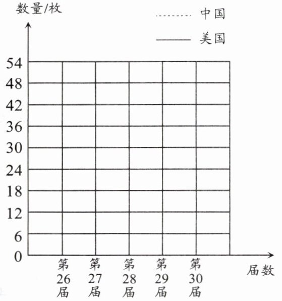 小福娃搜集了第26~30届奥运会中、美两国获得金牌数量信息,如下表。