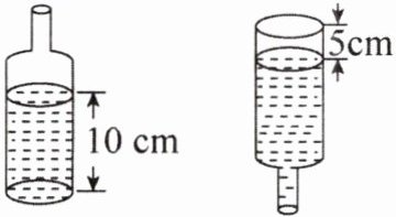 5. 一个内直径是6cm的饮料瓶里,饮料的高度是10cm。把瓶盖拧紧倒置,空白部分是圆柱形,高度是5cm。这个饮料瓶的容积是