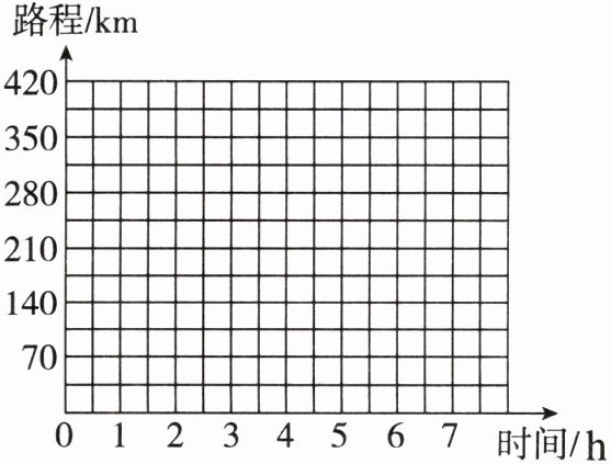 5. 在下图中描出表示路程和相对应时间的点,然后把它们按顺序连起来。并估算行驶$105km$大约要用多长时间。