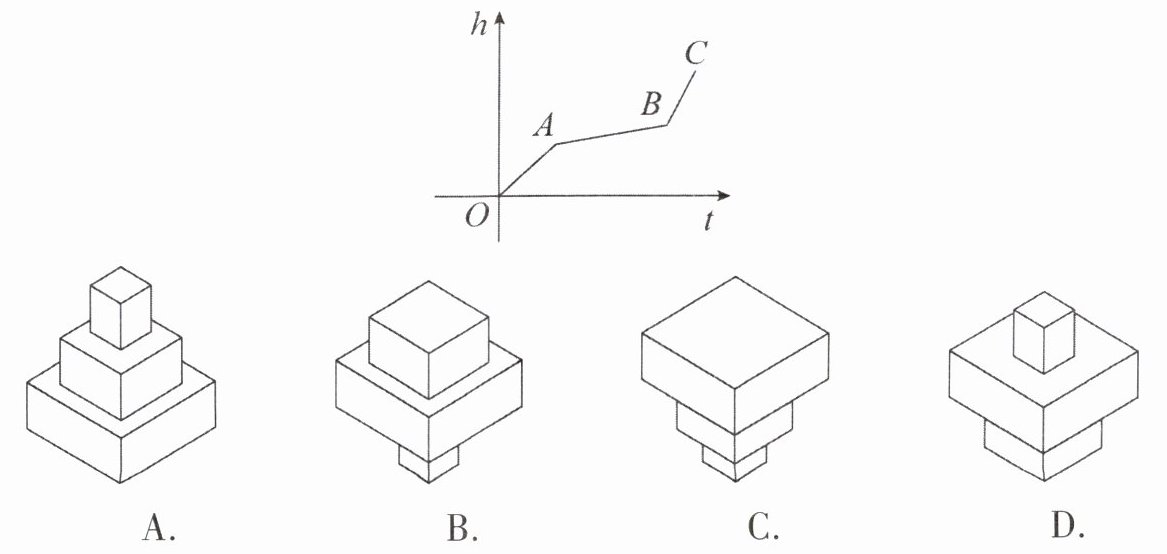 6. 均匀地向一个容器注水,最后把容器注满。在注水过程中,水面高度$h$随时间$t$的变化规律如图所示(图中$OABC$为折线),这个容器的形状可能是(