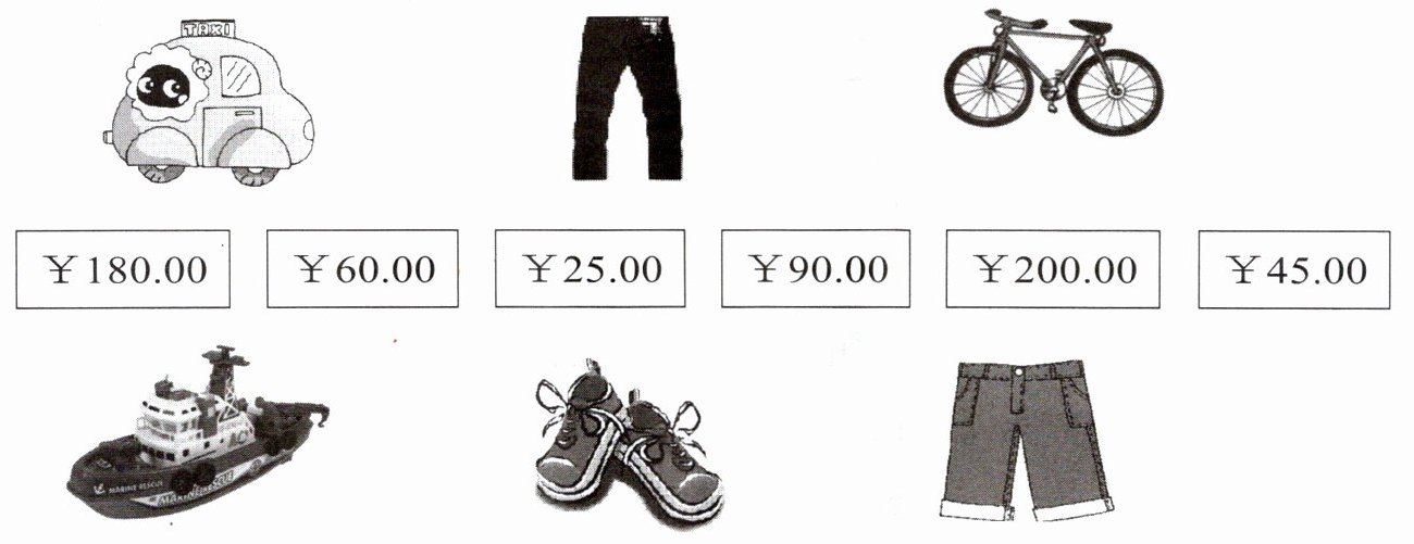 Ⅵ. Let's help. 你看,粗心的售货员把物品的价码弄乱了,你能按照下面的提示帮他将物品与其价格连线吗?