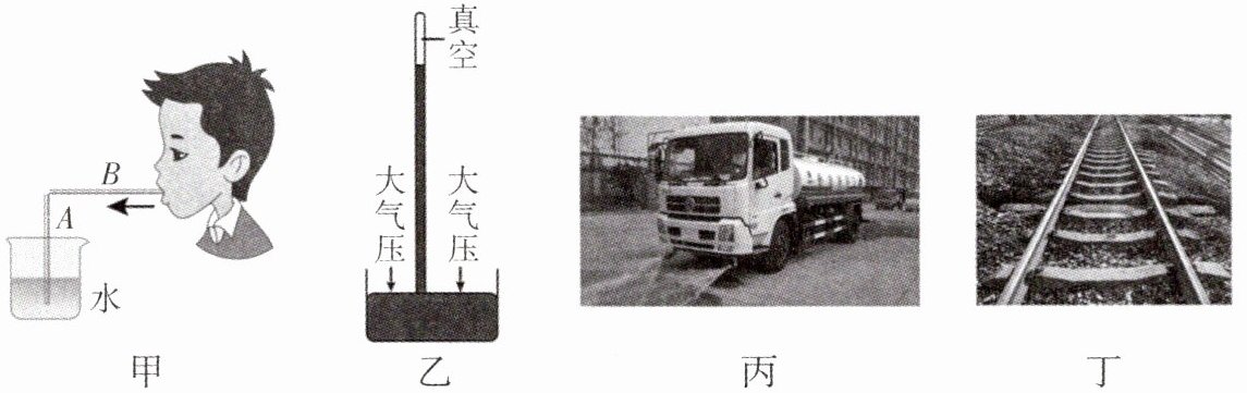 D.如图丁所示,铁路的钢轨铺在枕木上,是为了减小压强