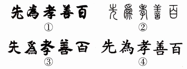 2. 下列对这四幅“百善孝为先”书法作品的欣赏,不正确的一项是(