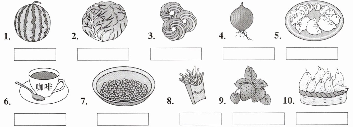 一、根据图片提示填写下列物品的英语名称(用单数形式表示)