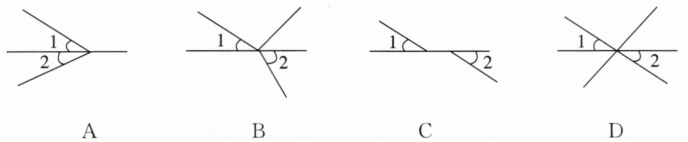 1. 下列图形中,$\angle 1和\angle 2$是对顶角的是(