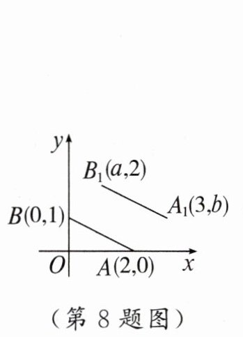 8. 如图,点$A$,$B的坐标分别为(2,0)$,$(0,1)$.若将线段$AB平移至A_1B_1$的位置,则$a + b$的值是____.