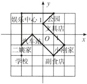 (2)他途中经过的地方有:副食店→汽车站→二姨家→娱乐中心→公园→文具店.