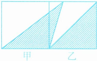 5. 右图中,边长相等的两个正方形中,画了甲、乙两个三角形(用阴影表示),它们的面积相比()。