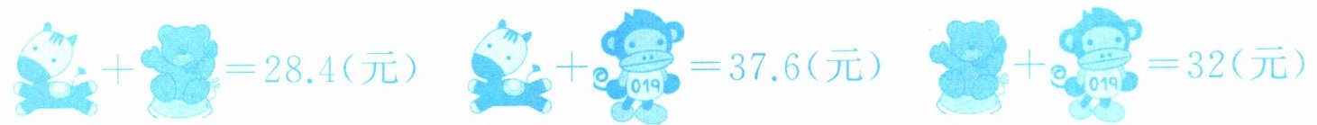 把前两个式子相减,(小马 + 小猴) - (小马 + 小熊)= 37.6 - 28.4,得出 小猴 - 小熊 = 9.2 元