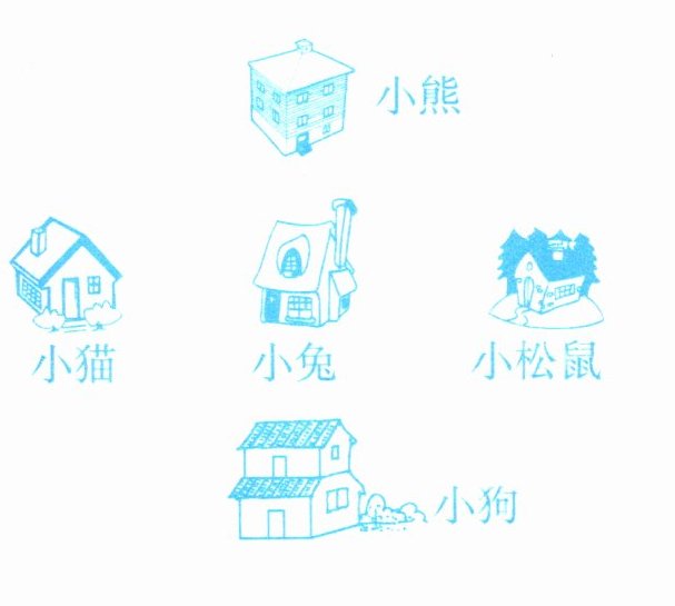 (2)小狗住在小熊的()面,小熊住在小狗的()面。