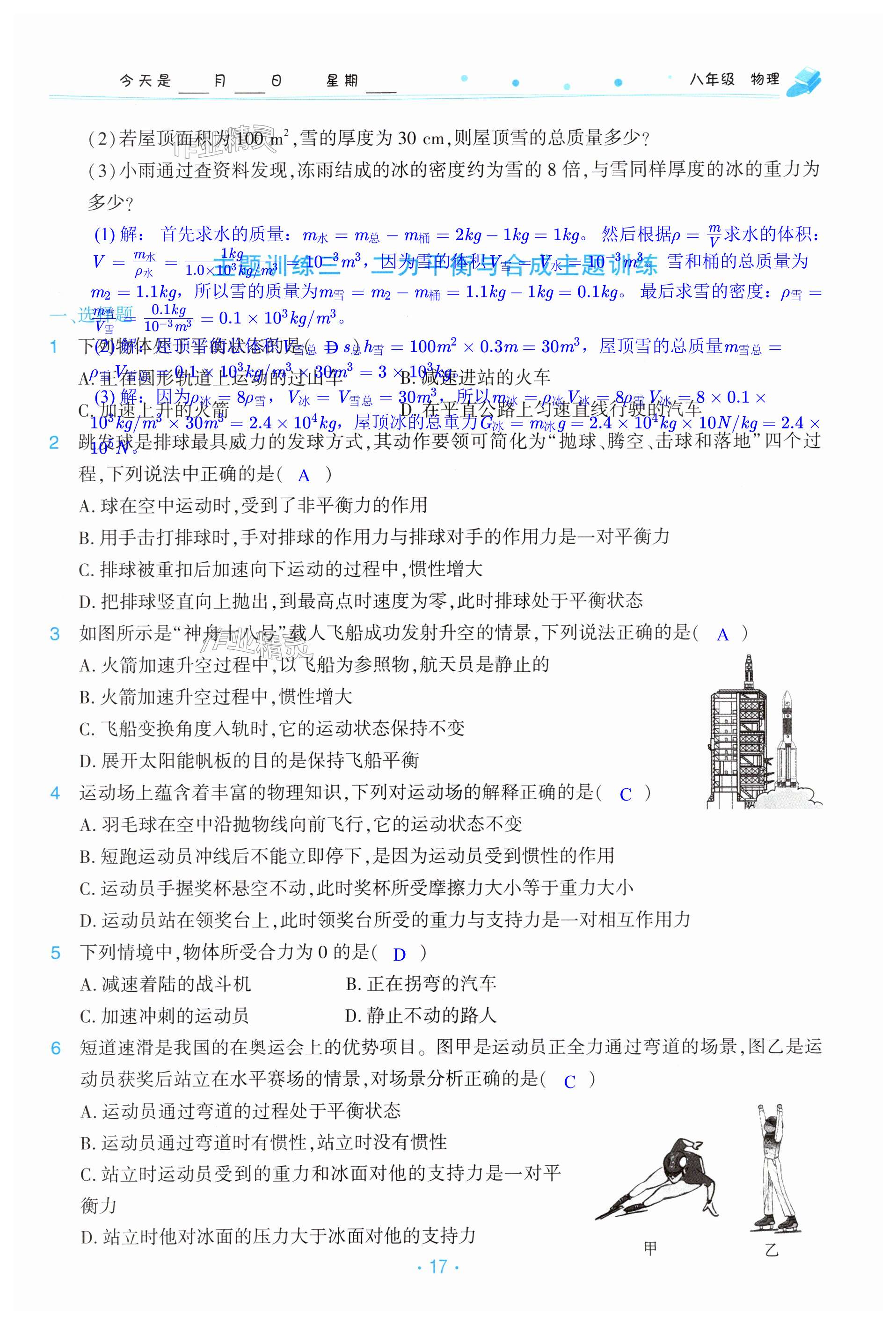 注:目前有些书本章节名称可能整理的还不是很完善,但都是按照顺序排列的,请同学们按照顺序仔细查找。练习册 2025年暑假作业北京教育出版社八年级物理北师大版 答案主要是用来给同学们做完题方便对答案用的,请勿直接抄袭。
