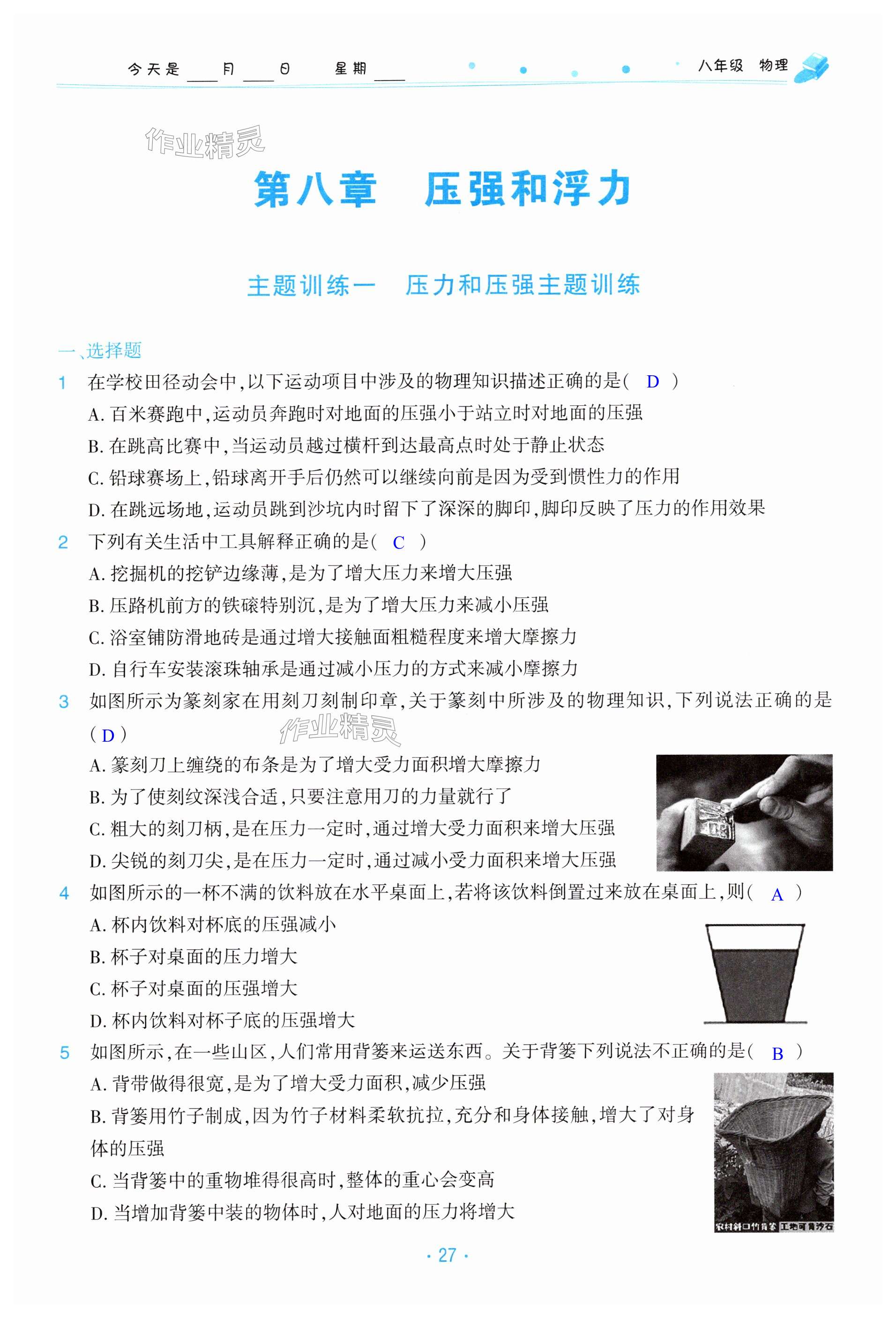 注:目前有些书本章节名称可能整理的还不是很完善,但都是按照顺序排列的,请同学们按照顺序仔细查找。练习册 2025年暑假作业北京教育出版社八年级物理北师大版 答案主要是用来给同学们做完题方便对答案用的,请勿直接抄袭。