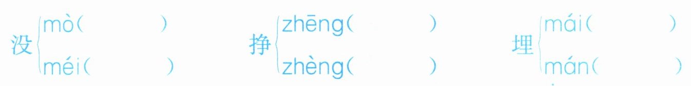 没$\left\{\begin{array}{l} mò(淹没)\\ méi(没有)\end{array} \right.$ 挣$\left\{\begin{array}{l} zhēng(挣扎)\\ zhèng(挣钱)\end{array} \right.$ 埋$\left\{\begin{array}{l} mái(埋藏)\\ mán(埋怨)\end{array} \right.$
