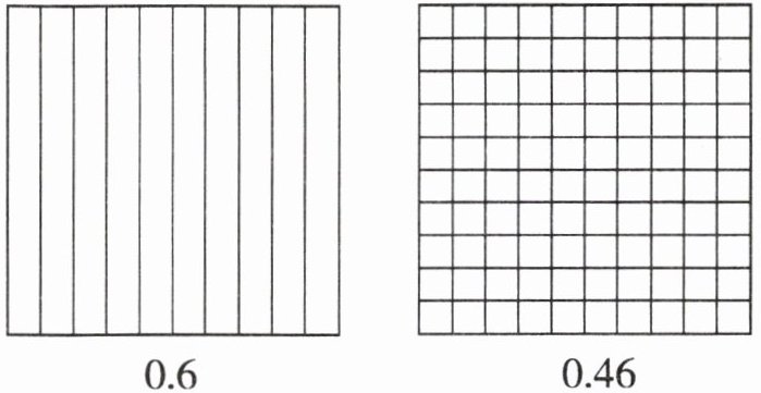 【解析】:对于$0.6$,把一个长方形平均分成$10$份,涂其中的$6$份;对于$0.46$,把一个正方形平均分成$100$份,涂其中的$46$份。