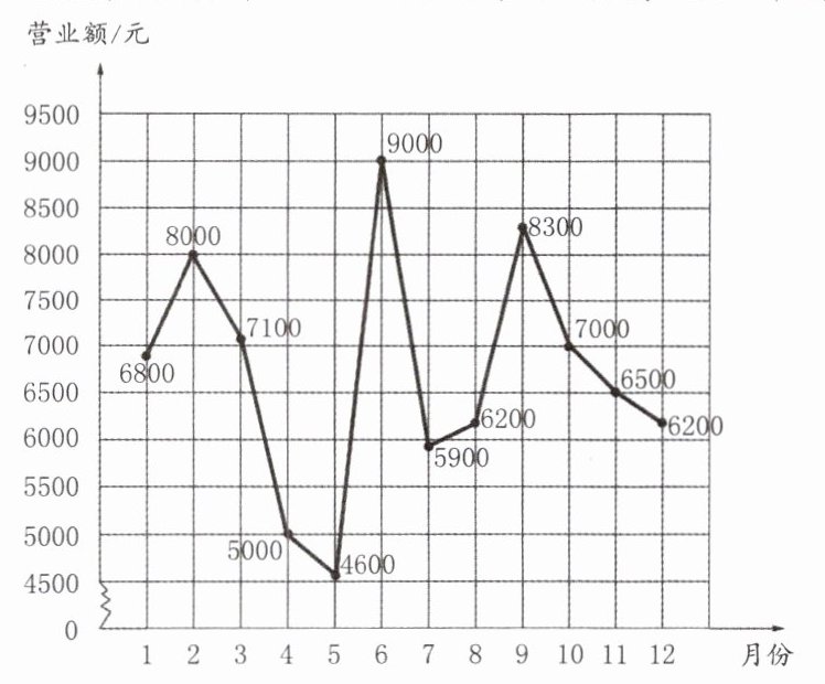 1. 营业额最高的是( )月份,最低的是( )月份。