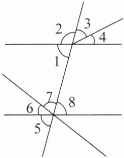 (3) $ \angle 1 $ 与 $ \angle 8 $ 是内错角. (