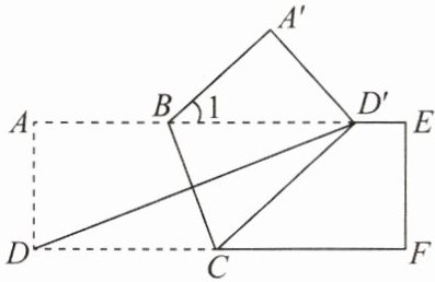 5. 将一张长方形纸片折叠成如图所示的图形,重叠部分是一个三角形,BC为折痕,若$∠1= 44^{\circ }$,则$∠DCB$的度数为 (