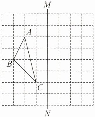 2. 如图,在方格纸中画出$\triangle ABC关于直线MN对称的\triangle A'B'C'$.