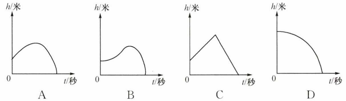 2. 你还记得投篮时篮球出手后在空中的飞行路线吗?图中哪幅图较准确地反映了篮球离地面的高度与投出后时间的关系(