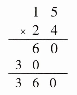 5. 实验小学要买 24 副球拍,每副球拍 15 元。请你根据下面的算式填空。
