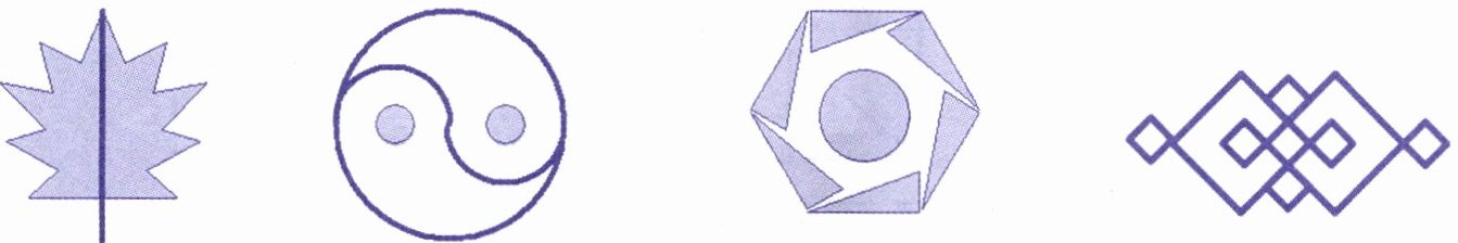 2. 类似花朵的图形画$1$条对称轴(过图形中心垂直底边的直线)。