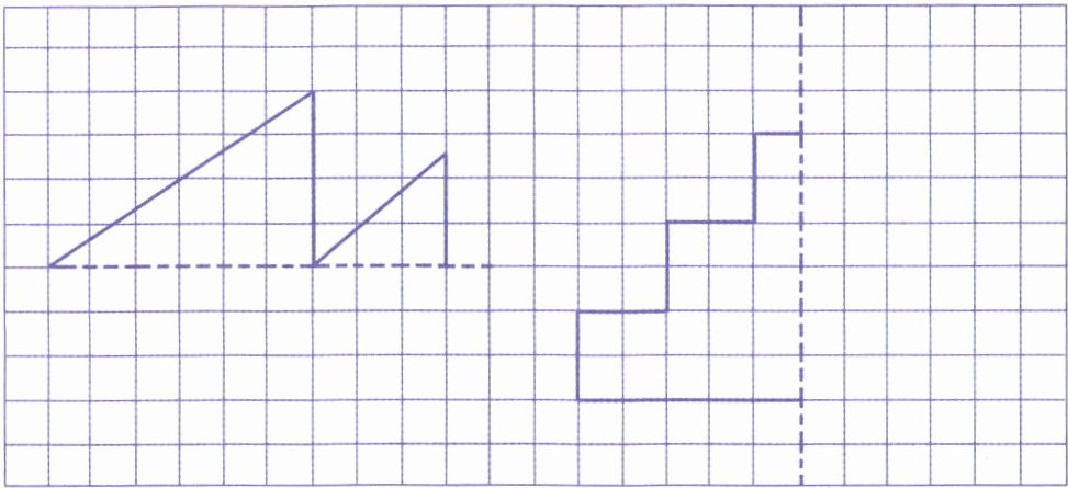 2. 画出下列图形的另一半,使它们成为轴对称图形。