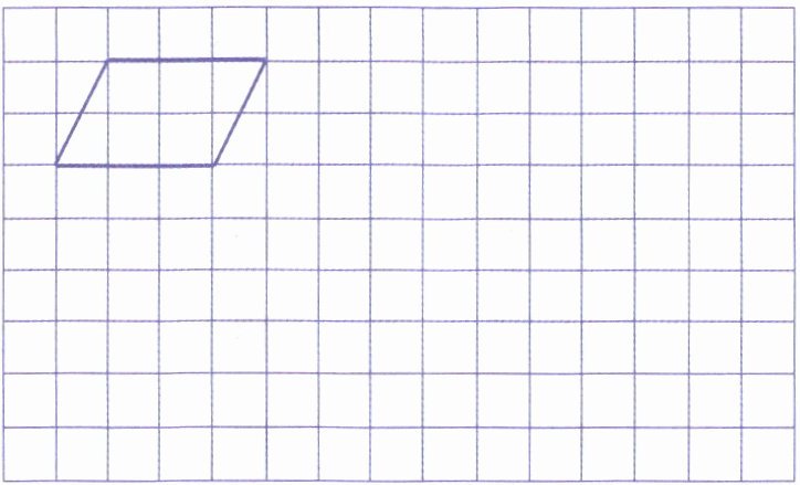 【解析】:根据平移的性质,图形平移时,图形上的每个点都按照相同的方向和距离进行移动。对于这个平行四边形,向下平移5格,就是把平行四边形的每个顶点都向下移动5格;再向右平移4格,就是把向下平移5格后的每个顶点再向右移动4格,然后依次连接各顶点,就得到平移后的图形。