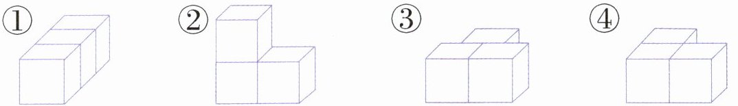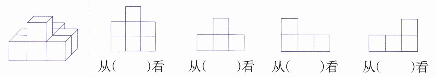 2. 填一填,找出从前面、上面、左面、右面看到的图形。