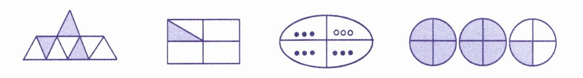 4. 用分数表示各图中的涂色部分。
