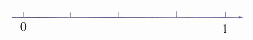 【答案】:在直线上,将$0$到$1$的线段平均分成$4$份,$\frac{1}{4}$和$\frac{6}{24}$对应从$0$开始的第$1$个等分点;$\frac{8}{16}$对应$0$到$1$线段的中点;$\frac{15}{20}$对应从$0$开始的第$3$个等分点。