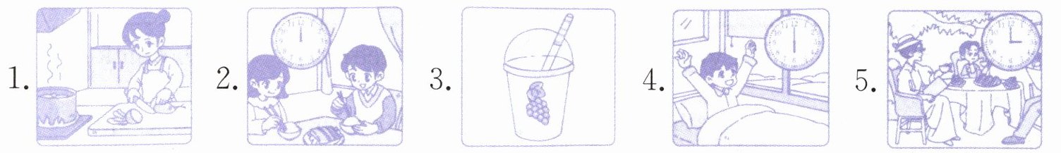 1. food 2. Time 3. juice 4. early 5. afternoon