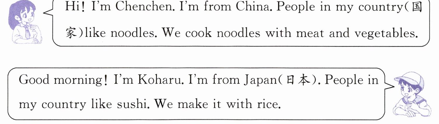 ( )5. Tina: I like sushi. It’s from China. I want to go to China.