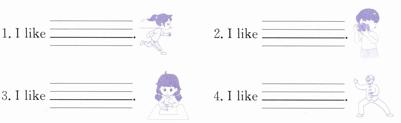 1. running 2. taking photos 3. writing 4. doing tai chi