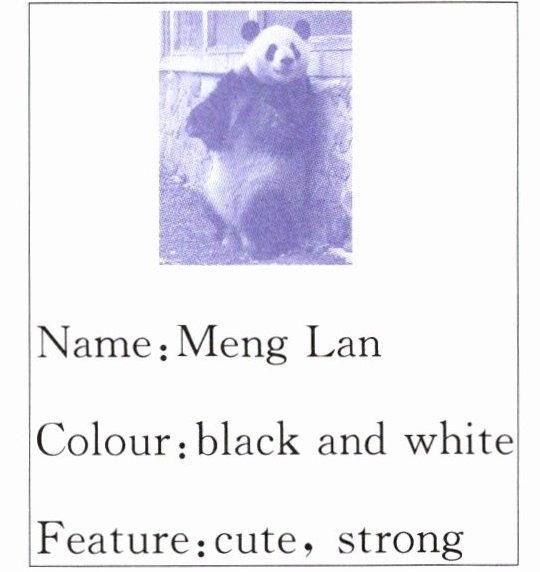 1.Meng Lan 2.panda 3.white 4.cute strong 5.him