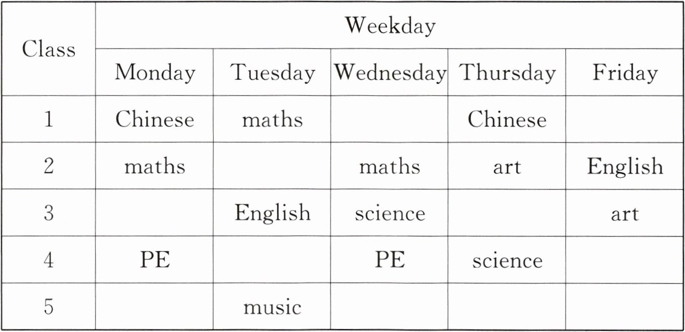 A. Art B. English C. Maths D. Chinese E. Science