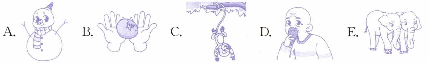(二)绘本中有些图片缺失了。根据描述,在方框内填写正确的图片选项。