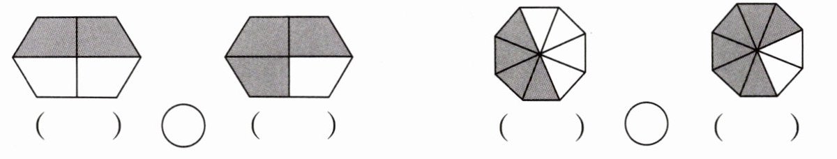 4. 用分数表示图中的阴影部分,并比较它们的大小。