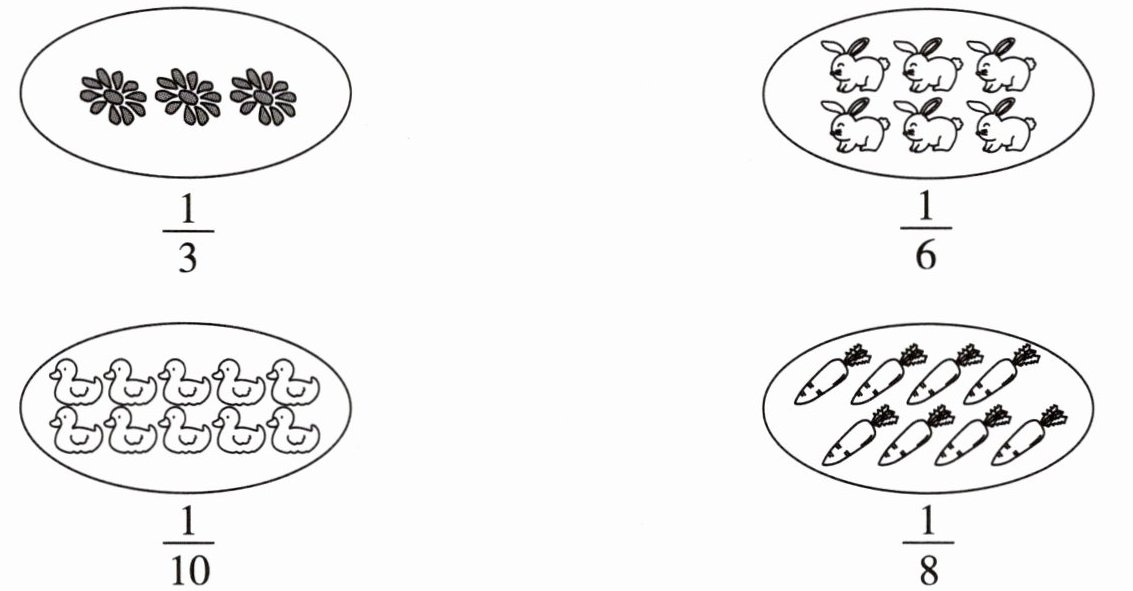 分别圈 1 朵花,1 只兔子,1 只小鸭,1 根胡萝卜