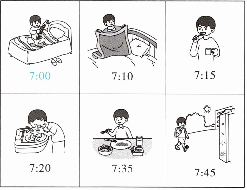 四、Taotao 是一个早睡早起的孩子。根据他的日程安排表,给下列句子排序。
