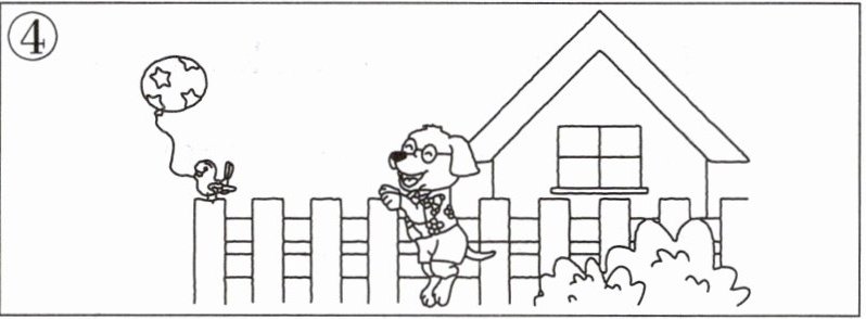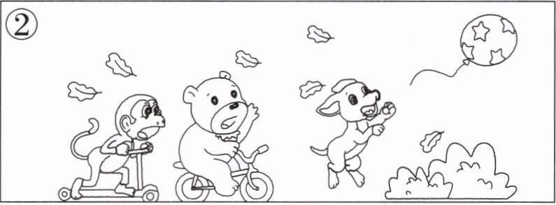 (二)第三幅图被人不小心撕破了,请你展开联想,画出图片并写出句子。