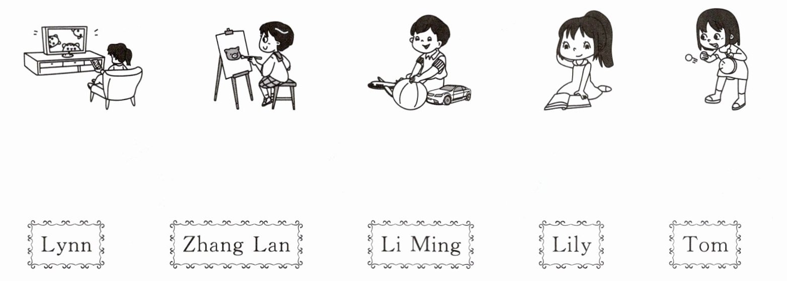 Hello! I'm Lynn. I have four friends. I like to read books on Sundays. But my friends are different. Zhang Lan likes to watch TV. Li Ming likes to play with his toys. Lily doesn't like to play with toys. She likes to play ping - pong. Do you know what Tom likes to do? He likes to draw pictures.