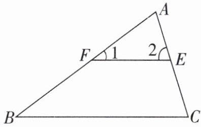 9. 如图,如果$∠1=36^{\circ}$,$∠C=74^{\circ}$,$∠B=36^{\circ}$,求$∠2$的度数。