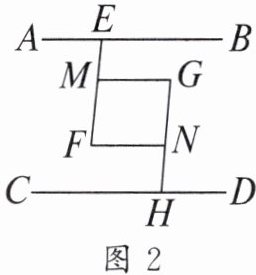 10. 中国汉字博大精深,方块文字智慧灵秀、奥妙无穷。图1是一个“互”字,可以抽象成图2所示的几何图形,其中$AB// CD$,$MG// FN$,点$E$,$M$,$F$在同一直线上,点$G$,$N$,$H$在同一直线上,且$∠AEF=∠GHD$。试说明$∠EFN=∠G$。(提示:延长$EF$交$CD$于点$P$)