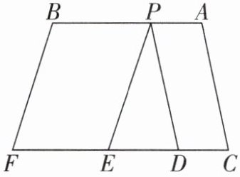 因为 $ AB // FC $,所以 $ \angle F=180^{\circ}-\angle B=70^{\circ} $,$ \angle C=180^{\circ}-\angle A=80^{\circ} $。因为 $ AC // PD $,$ BF // PE $,所以 $ \angle PED=\angle F=70^{\circ} $,$ \angle PDE=\angle C=80^{\circ} $,所以 $ \angle DPE=180^{\circ}-\angle PED-\angle PDE=30^{\circ} $。