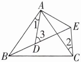 7. 如图,已知$AB=AC$,$AD=AE$,$∠BAC=∠DAE$,$∠1=25^{\circ }$,$∠2=30^{\circ }$,则$∠3=$______。