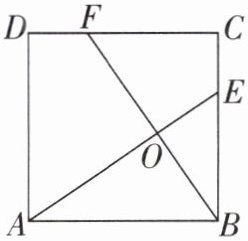 10. 如图,两只蚂蚁分别位于一个正方形的两个顶点$A$,$B$上,它们分别沿$AE$,$BF$的路线向$BC$和$CD$爬行,如果$AE$和$BF$互相垂直,那么它们爬行的距离相等吗?说明理由。