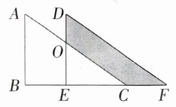 11. 如图,两个全等的直角三角形重叠在一起,将其中的一个三角形沿着点$B$到点$C$的方向平移到$\triangle DEF$的位置,其中$∠ABC=∠DEF=90^{\circ }$,$AB=10$,$DO=4$,平移距离为6,则阴影部分的面积为______。