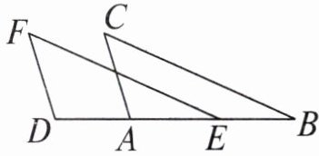 9. 如图,点$D$,$A$,$E$,$B$在同一条直线上,$EF = BC$,$DF = AC$,$AD = BE$,试说明$∠F = ∠C$。