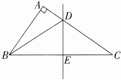11. 如图,在$\triangle ABC$中,$\angle BAC = 90^{\circ}$,$AC = 8cm$,$DE$是$BC$边上的垂直平分线,$\triangle ABD$的周长为$14cm$,求$AB$的长。