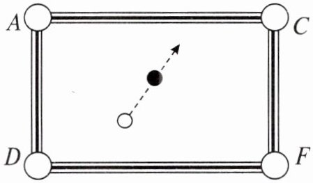 不会进入F号洞,作白球M关于AC的对称点M′,连接黑白球的直线交AC于点O,连接M′O,即可看出直线M′O不经过F洞.